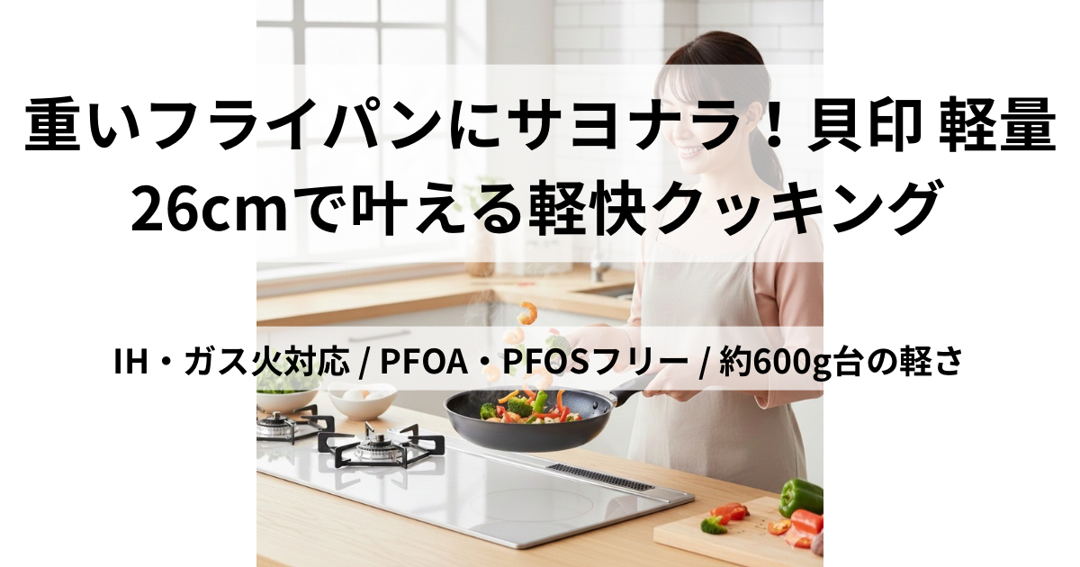 実は、私も以前は重いフライパンに苦労していました。しかし、貝印 KAI 軽い フライパン 26cm(DW5629)に変えてから、料理への負担が驚くほど軽減されました。